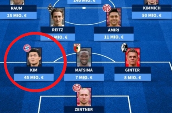 또 다른 통계 매체 '트랜스퍼마크트' 독일판도 이날 팬 투표로 뽑은 이주의 팀을 공개했다. 김민재는 3-5-2 포메이션에서 왼쪽 센터백 자리에 이름을 올렸다.