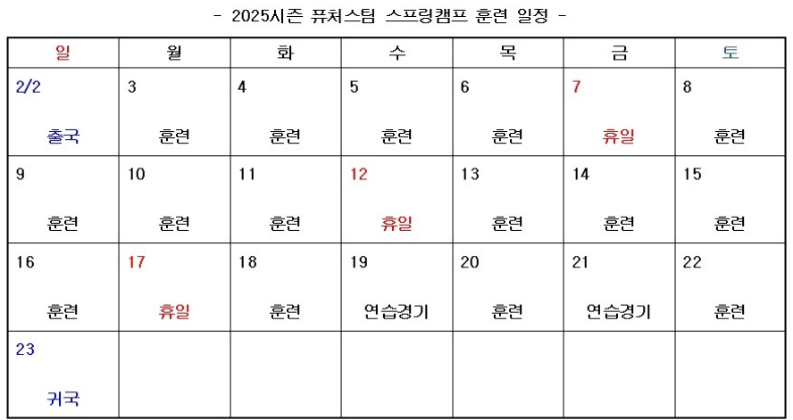 키움은 "내달 2일부터 23일까지 총 22일간 대만 가오슝 국경칭푸야구장에서 2025시즌 퓨처스팀 스프링캠프를 실시한다"고 31일 밝혔다.