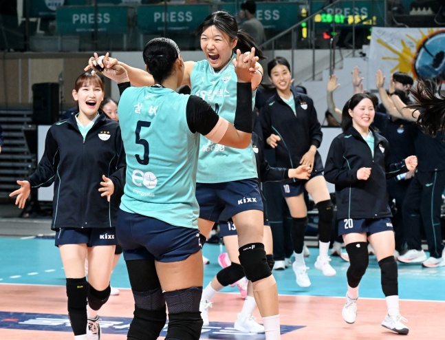 이날 15점으로 승리를 이끈 캡틴 유서연은 이에 대해 "현대건설은 높이도 있고 경험 있는 선수들이 많아 몇 점을 이기고 있어도 금방 따라오는 느낌이었다. 그 부분에 불안감이 있었다"고 설명했다.
