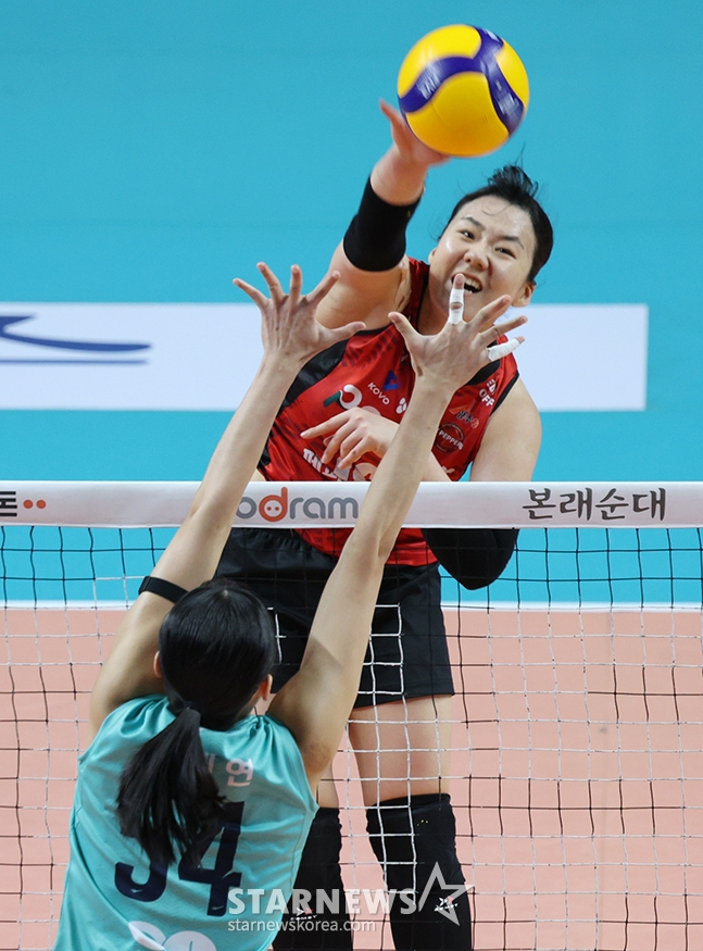 하지만 힘에 부친 탓일까. 5세트 막판 후위에서 때려 넣은 것이 장위에게 연속적으로 막혔다. 옆에선 김미연이 잇따라 아쉬운 플레이를 이어가면서 결국 역전패로 활약이 빛바랬다.