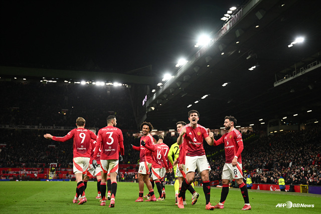 맨유는 8일(한국시간) 영국 맨체스터 올드 트래포드에서 열린 2024~2025 잉글랜드 축구협회(FA)컵 4라운드(32강) 레스터시티와 홈경기에서 2-1 역전승을 거뒀다. 후반 추가시간 3분 맨유 센터백 해리 매과이어가 짜릿한 역전골을 뽑아냈다.