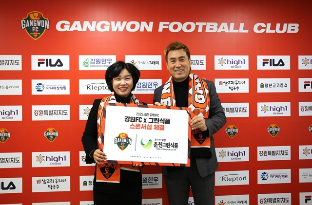 강원과 춘천그린식품은 올해 처음 손을 맞잡았다. 강원은 홈경기에서 고정식 L보드 및 공식 홈페이지 배너를 활용해 춘천그린식품 브랜드를 홍보할 예정이다. 춘천그린식품은 현금 후원을 통해 강원을 지원한다.
