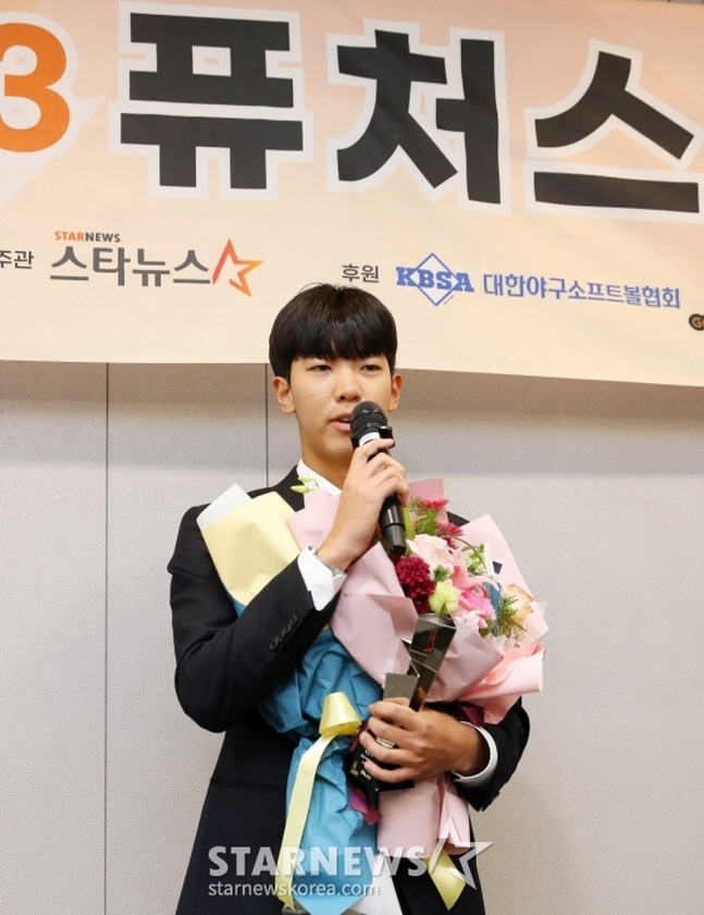 턱선이 실종됐다 싶을 정도로 확실히 살이 올랐다. 보통 선수라면 걱정됐을 체중 이슈가 이 선수한테는 반가운 소식이다. 그 주인공은 한화 이글스 특급 좌완 유망주 황준서(20)다.