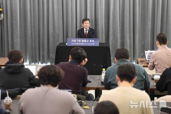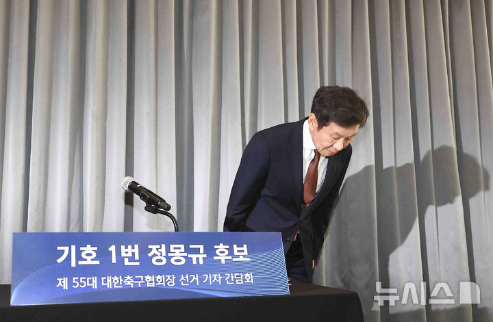 제55대 축구협회장 선거에 도전하는 정 후보는 11일 오전 서울 신문로의 포니정재단에서 기자간담회를 진행했다. 정 후보는 "대안 없는 비방과 근거 없는 허위사실만 주장해선 안 된다. 대안을 제안하거나 경선에 집중할 것을 제안한다"며 "새로 선거운동을 시작하며 오직 현장 중심의 선거운동을 펼치겠다. 현장 이야기를 듣고 정책에 반영하겠다"고 다짐했다.