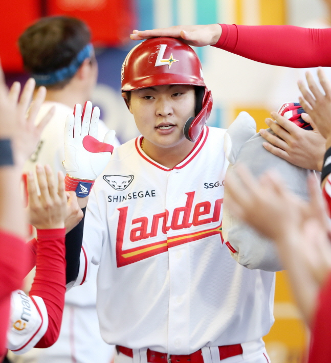 2021년 SK 와이번스(SSG 전신)의 2차 2라운드 지명을 받고 입단한 그는 2021년과 2023년을 합해 단 5경기 출전에 그쳤다. 제대로 기회를 잡은 지난해엔 106경기에서 타율 0.250(340타수 85안타) 11홈런 45타점, OPS(출루율+장타율) 0.688로 기대를 높였다. 시즌 종료 후 연봉 협상에서도 웃었다. 최저 연봉(3000만원)을 받았던 그는 무려 5000만원, 166.7% 오른 8000만원에 도장을 찍었다.