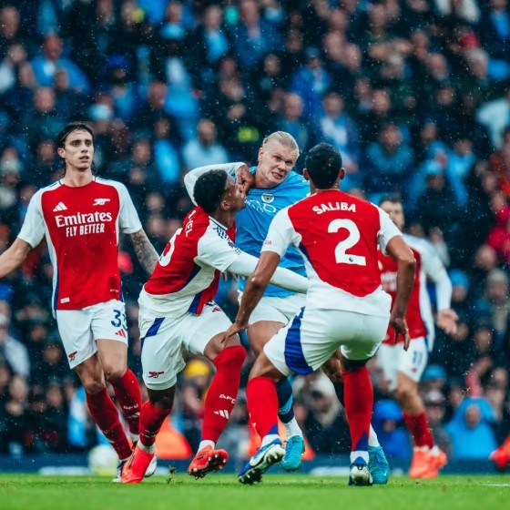 두 시즌 연속 EPL 우승을 다투다가 리그 4연패를 달성한 맨체스터 시티(맨시티)가 연거푸 2위에 올랐던 아스널과 이날 영국 맨체스터의 이티하드 스타디움에서 2024-2025시즌 EPL 5라운드 첫 맞대결을 홈경기로 펼쳤다. 경기는 치열한 몸싸움과 공방전 끝에 2-2 무승부로 끝났다.