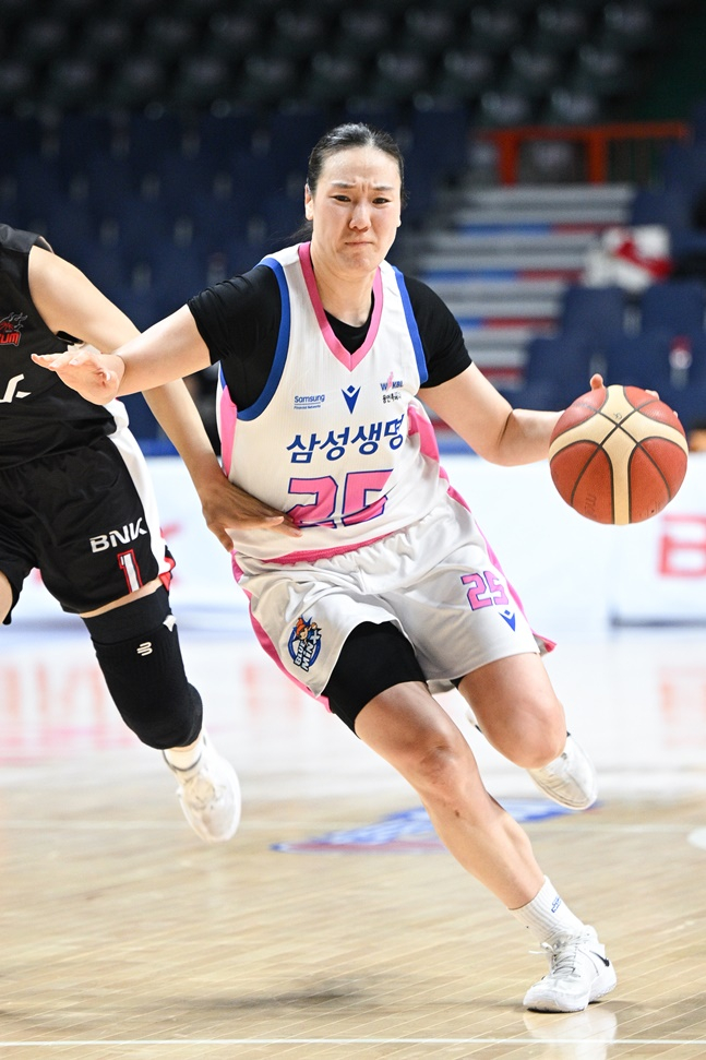 손에서 피가 났음에도 경기에 집중해 득점을 이어갔다. 용인 삼성생명 블루밍스의 든든한 캡틴 배혜윤(36)의 대활약에 적장도 입을 다물지 못했다.