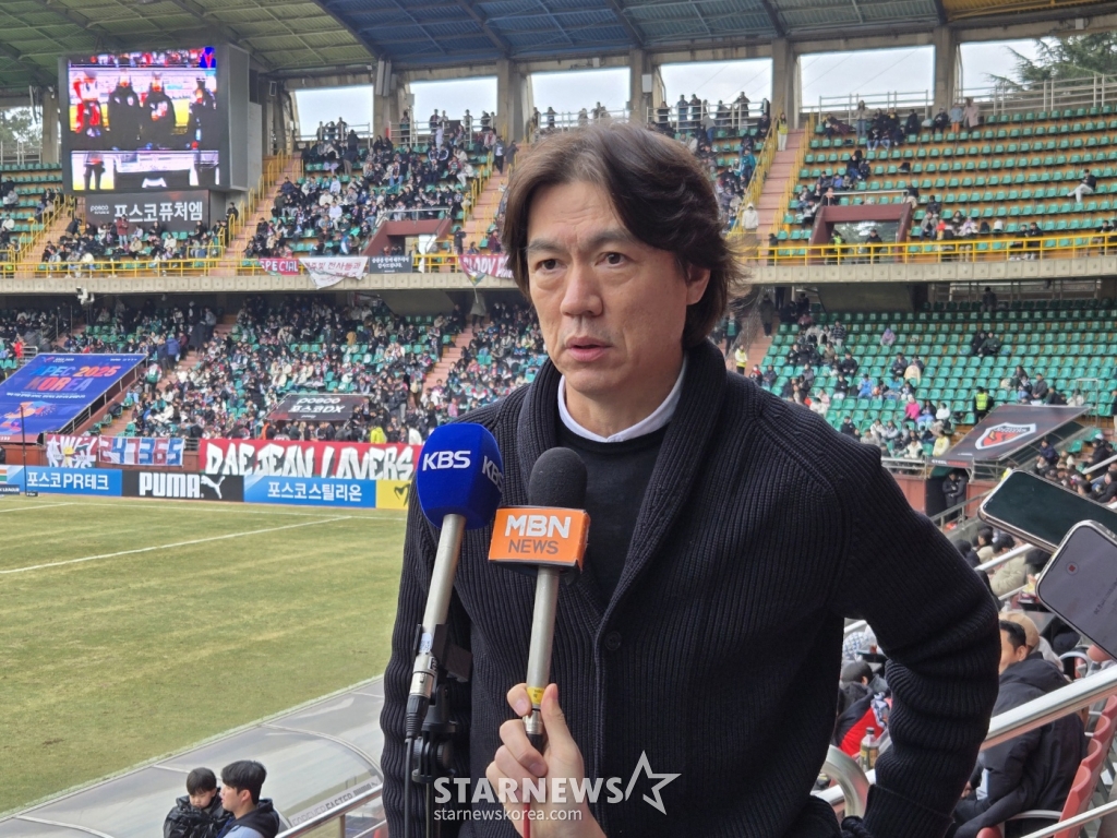 홍명보 감독은 15일 오후 포항 스틸야드에서 열린 하나은행 K리그1 2025 포항 스틸러스와 대전하나시티즌의 개막전 현장을 찾았다.