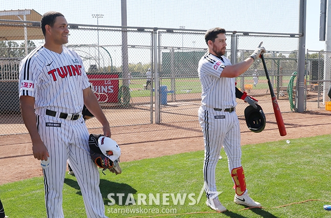 스포츠야구[포토] 오스틴 '저쪽으로 넘어가는 거 봤지?'발행 : 2025.02.16 ・ 05:32스코츠데일(미국)=김진경 대기자LG 트윈스 선수단이 16일 미국 애리조나주 스코츠데일 인디언스쿨파크 야구장에서 스프링캠프를 진행했다.오스틴이 타격 훈련을 마친 후 치리노스에게 홈런을 자랑하고 있다.<저작권자 © 스타뉴스, 무단전재 및 재배포 금지>샌프런시스코_자이언츠밥_멜빈이정후SFG전훈전지훈현추천 기사김진경 대기자기자홈좋아요 스포츠-야구의 인기 급상승 뉴스스포츠-야구의 최신 뉴스