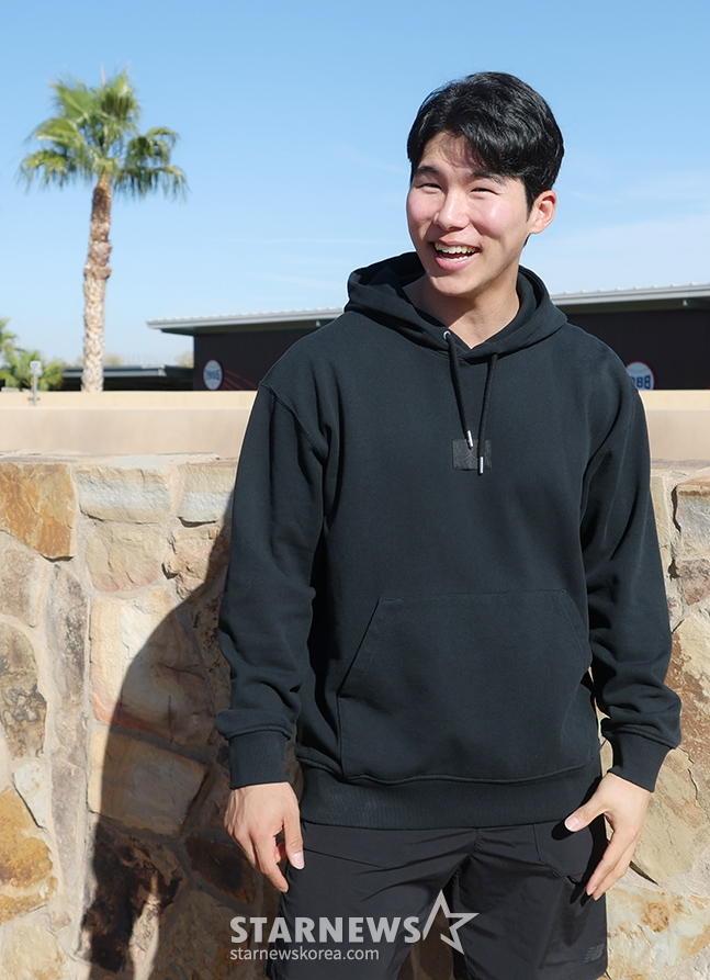 김혜성은 18일(한국시간) 미국 애리조나주 글렌데일에 위치한 캐멀백 랜치 야구장에서 2025 다저스 스프링캠프 풀 스쿼드 3일 차 훈련을 마친 뒤 공식 기자회견을 가졌다. 이날도 수비부터 공격까지 다양한 훈련을 소화한 김혜성은 환한 미소와 함께 취재진을 반겼다. 김혜성은 지난 1월 포스팅 시스템을 통해 다저스와 3+2년 최대 2200만 달러(약 318억 원) 계약을 체결하고 빅리그에 진출했다.