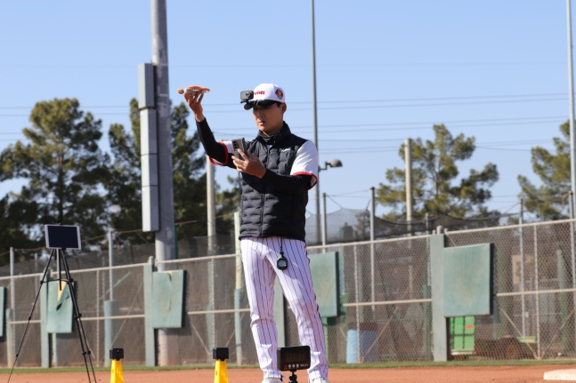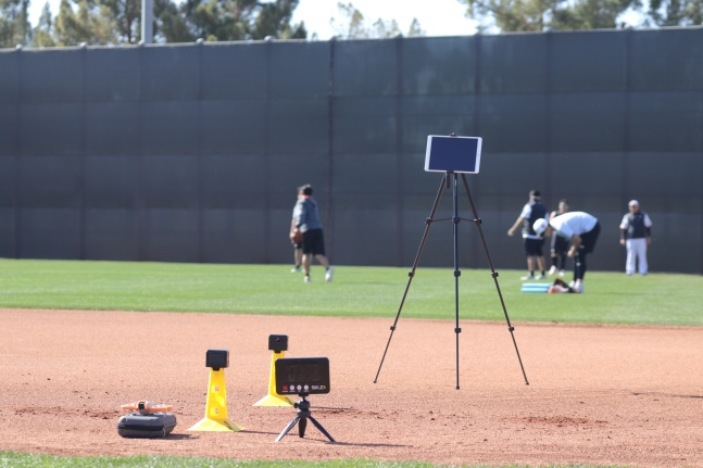 다채로운 훈련 장비들이 눈에 띈다. 일단 하늘에는 선수들의 움직임을 실시간 체크하기 위한 드론이 떠 있다. 정수성 LG 1군 주루코치는 "좌우 영상은 충분히 찍고 보면서 동작에 대한 코멘트를 해줄 수 있는데 아무래도 위에서 찍는 영상은 쉽게 볼 수가 없다. 드론 영상을 사용해서 스타트하는 모습, 베이스 러닝 및 턴하는 모습을 위에서 보면서 구체적으로 얘기하면서 활용하고 있다"고 설명했다.