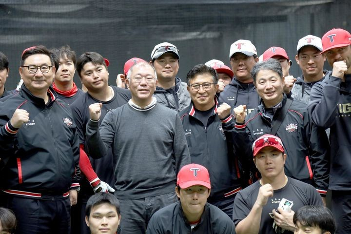 정 회장의 타이거즈 사랑은 겨우내 계속 이어졌다. 현대차그룹에 따르면 정의선 회장은 지난 16일(현지 시각) 미국 스프링캠프지를 직접 찾아 훈련 중인 KIA 타이거즈 선수들과 코칭스태프를 격려했다. 정 회장은 KIA 선수들과 만나 "지난 시즌 좋은 성적을 거둔 것을 진심으로 축하하고, 현대차그룹 구성원에게 큰 기쁨이 됐다"며 "지난해 11월 축승연에 폭설 때문에 참석을 못 했는데, 이렇게 전지훈련장에서 직접 만나게 돼 기쁘다"고 말했다.