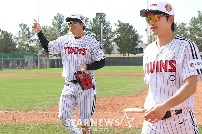 스포츠야구[포토] 김현수 '저기로 넘긴 거 봤지?'발행 : 2025.02.20 ・ 09:39조회수 :스코츠데일(미국)=김진경 대기자LG 트윈스 선수단이 20일 미국 애리조나주 스코츠데일 인디언스쿨파크 야구장에서 열린 스프링캠프에서 청백전을 진행했다.김현수와 박해민이 공수 교태 때 더그아웃으로 향하고 있다.<저작권자 © 스타뉴스, 무단전재 및 재배포 금지>브리핑추천 기사김진경 대기자기자홈좋아요스포츠-야구의 인기 급상승 뉴스스포츠-야구의 최신 뉴스AD