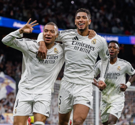 레알은 20일(한국시간) 스페인 마드리드의 산티아고 베르나베우에서 열린 '2024~2025시즌 유럽축구연맹(UEFA) 챔피언스리그(UCL)' 16강 플레이오프(PO) 2차전 홈경기에서 음바페의 해트트릭 활약에 힘입어 맨시티를 3-1로 꺾었다.