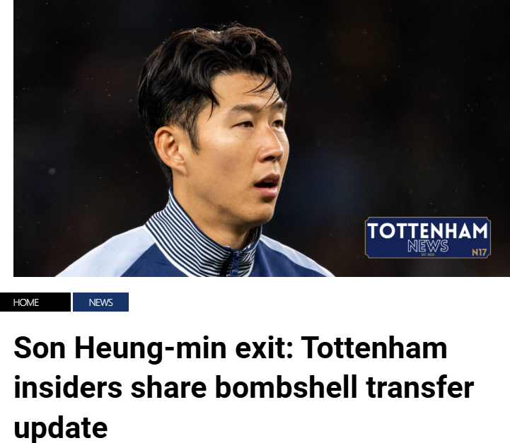 영국 매체 '토트넘 홋스퍼 뉴스'는 20일(한국시간) "토트넘 관계자들이 손흥민의 이적에 관련해 폭탄 같은 소식을 공유했다"며 "손흥민은 토트넘 미래 계획에서 제외됐다. 여름 이적시장에서 팀을 떠날 가능성이 농후하다"고 보도했다.