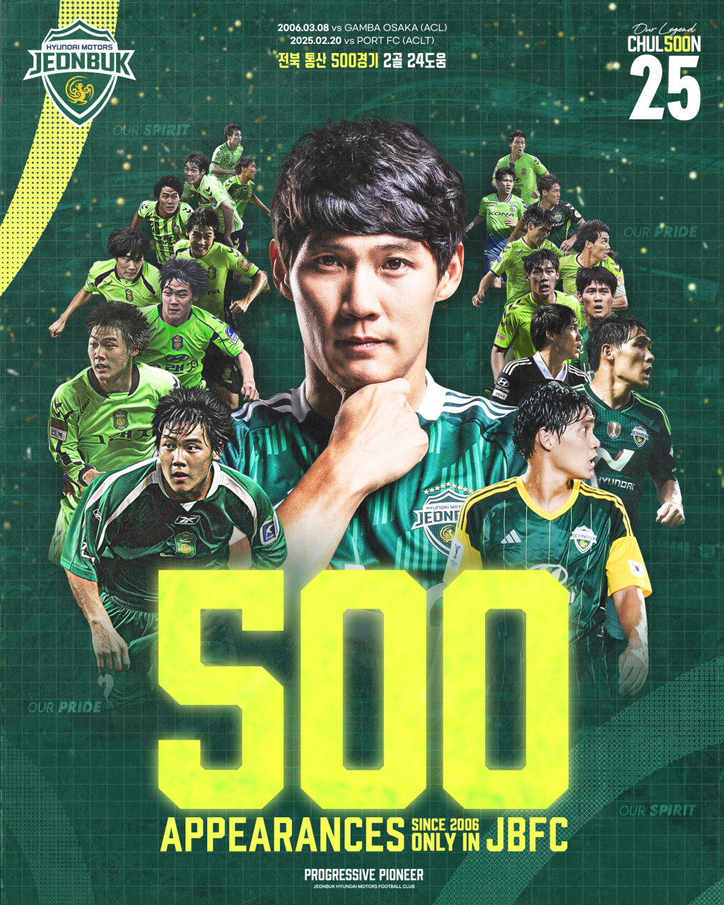 이날 최철순은 역대 최초로 단일클럽 500경기 출장 기록을 세웠다. 상주 상무(2012.07~2014.04) 시절을 제외하고 전북에서만 선수 생활을 한 최철순이다. 전북에서 K리그(리그컵 포함) 404경기, AFC 챔피언스리그(엘리트·2) 70경기, 코리아컵 23경기, 클럽월드컵 3경기에 출전했다.