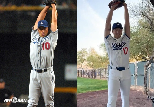 최근 다저스가 공식 SNS에서 오타니가 "노모"라는 말과 함께 글러브를 끼고 두 팔을 들어 올린 영상이 화제가 됐다. 다저스 대선배이자 일본인 메이저리거들의 우상과 같은 노모 히데오의 와인드업 동작을 흉내 낸 것이었다. 노모는 특유의 와인드업에서 시작되는 토네이도 투구폼으로 양대 리그 탈삼진 1위, 노히트 노런 등 여러 업적을 쌓으며 12시즌 동안 123승을 거뒀다. 다저스에서는 7시즌 동안 81승 66패 평균자책점 3.74의 성적을 올렸다.