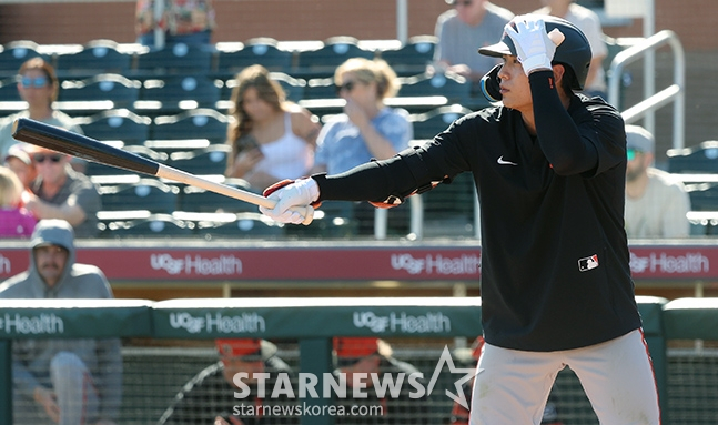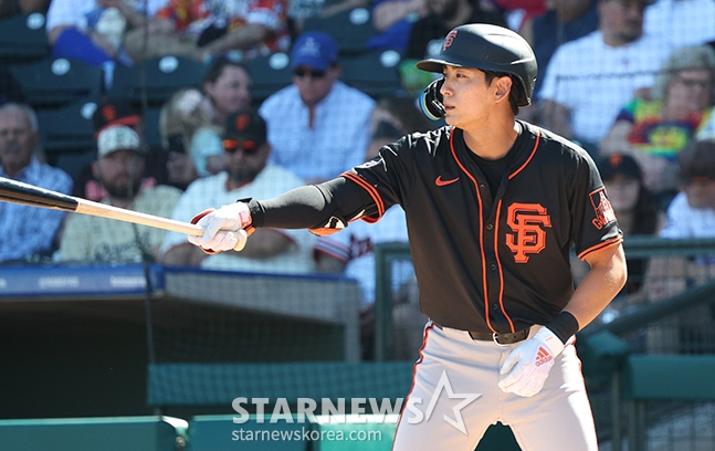 이정후는 23일(한국시간) 미국 애리조나주 서프라이즈의 서프라이즈 스타디움에서 열리는 텍사스 레인저스와 2025 메이저리그(ML) 시범경기 개막전에서 3번 타자 및 중견수로 선발 출전해 1회 첫 타석부터 우전 안타를 터트렸다. 하지만 이후 타석에서는 삼진, 1루 땅볼 아웃으로 각각 물러나며 아쉬움을 삼켰다. 이정후의 시범경기 첫 경기 성적은 3타수 1안타 1삼진이 됐다.
