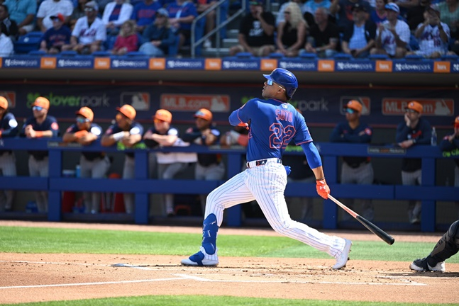 소토는 23일(한국시간) 미국 플로리다주 세인트루시 클로버 파크에서 열린 휴스턴 애스트로스와 2025 메이저리그(MLB) 스프링캠프 시범경기에서 팀의 2번 타자 겸 우익수로 선발 출전했다.