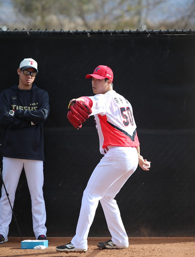 메이저리그(MLB) LA 다저스의 야마모토 요시노부(27)와 똑 닮은 투구폼으로 화제가 된 KIA 타이거즈의 '1차지명 투수' 유승철(27)이 스프링캠프부터 구속을 끌어올리고 있다.