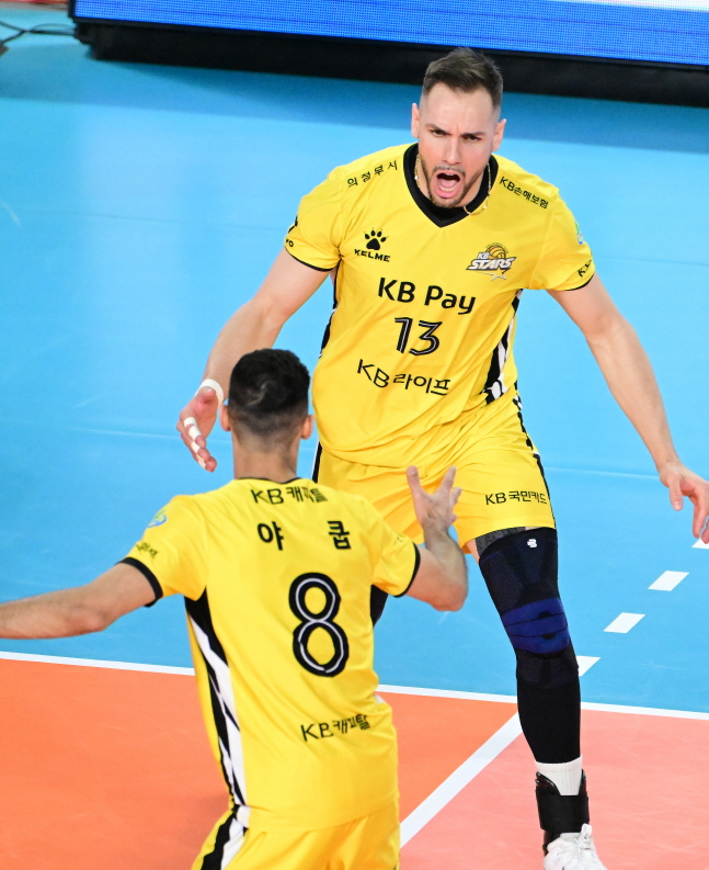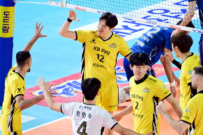 KB손해보험은 23일 대전 충무체육관에서 대전 삼성화재와 도드람 2024~2025 V리그 남자부 원정경기에서 세트스코어 3-0(25-20, 25-23, 25-20) 셧아웃 승리를 거뒀다.