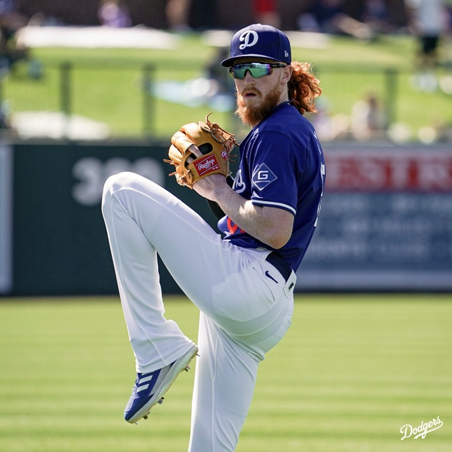 메이는 24일(한국시간) 미국 애리조나주 글렌데일의 캐멀백 랜치에서 열린 샌디에이고 파드리스와 2025 메이저리그(MLB) 스프링캠프 시범경기에서 다저스의 선발투수로 마운드에 올랐다.