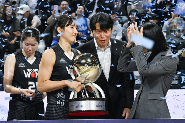 이어 김단비는 "그동안 'MVP다운 플레이를 또 보여줄 수 있을까'라고 생각할 정도로 압박을 많이 많았다. '그만둘까'하고 고민도 했다. 하지만 이런 압박을 10년 넘게 받으신 분이 위성우 감독님이었다. 위 감독님은 왕관의 무게를 이겨내기 위해 항상 공부를 하신다. 덕분에 저도 압박을 이겨냈다. 저의 최고 목표는 위 감독님의 최고 작품이 되는 것이다. 위 감독님께서 최고의 제자는 '김단비'라고 말할 수 있게 끝까지 노력하겠다. 내려가야 한다면 최대한 천천히, 앞으로 더 올라갈 수 있다면 올라가도록 하겠다. 위 감독님께 감사하다"고 진심을 남겼다.