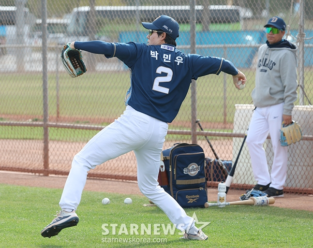 투손 캠프 당시 가장 기대되는 선수를 뽑아달라는 질문에도 미소와 함께 행복한 고민을 했다. 박민우는 "음... 다 잘하는데 우리 투수 중엔 최우석 선수가 제일 기대된다. 불펜 피칭을 봤는데 그동안 내가 봤던 1군에서 뛰었던 중간 투수들 못지않게 좋은 공을 던진다. 아직 나이도 어린데 지난해 1군도 경험했고, 충분히 기대할 선수 같다"고 미소 지었다. 이어 "야수는 한재환 선수가 눈에 띈다. 옆에서 보는데(한재환 1루, 박민우 2루) 수비도 공격도 다 좋다. (한)재환이도 지난해 1군에서 경험했고, 앞으로 1군에서 경기를 이끌 선수들이 나와야 하는데 그중 하나라 생각한다"고 강조했다.