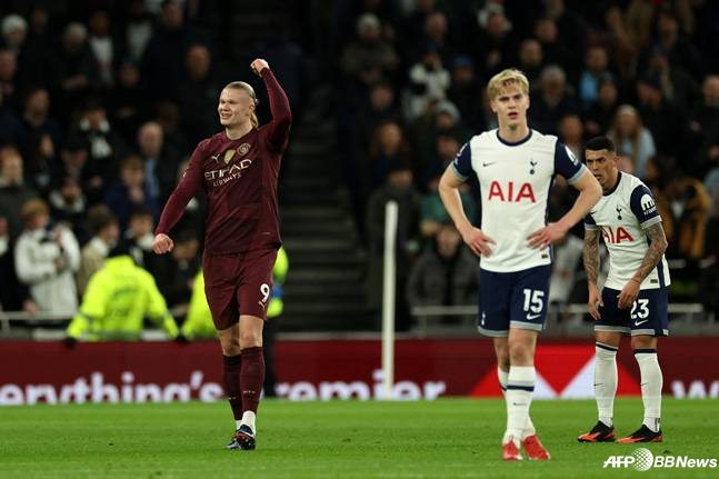 급할 것이 없었던 맨시티는 여유롭게 경기를 운영했다. 짧고 긴 패스를 섞으며 토트넘 수비진을 끌어냈다. 득점이 절실했던 토트넘은 빠르게 전방 압박을 시도했다. 하지만 맨시티의 볼 줄기를 끊어내는 데 어려움을 겪었다. 토트넘은 37분 매디슨을 빼고 티모 베르너를 투입하며 마지막 승부수를 띄웠다.