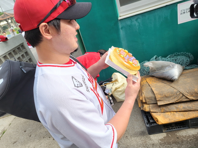지난해 4월 최정(38·SSG 랜더스)의 한국 프로야구 역사상 최다 홈런이 터져나왔고 치열한 경쟁 속 그 행운의 주인공은 강성구(38) 씨였다. 그리고 약 1년 만에 다시 최정과 연이 이어졌다. 일본 오키나와 팬 투어로 캠프를 찾은 것.