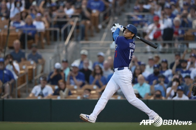 오타니는 1일(한국시간) 미국 애리조나주 글렌데일에 위치한 캐멀백 랜치에서 열린 2025 메이저리그(MLB) 시범경기 LA 에인절스와 홈 경기에서 1번 및 지명타자로 선발 출전해 1회 첫 타석부터 좌월 솔로포를 때려냈다.