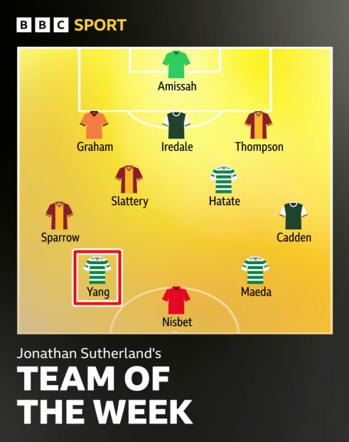 영국 매체 'BBC'는 4일(한국시간) 2024~2025시즌 스코틀랜드 프리미어십 이주의 팀을 공개했다. 스코틀랜드 명 해설자 조너선 서덜랜드는 양현준을 오른쪽 윙어에 올리며 "양현준은 슈퍼서브다. 벤치에서 경기를 시작해 2골 1도움을 기록했다"고 극찬을 남겼다.