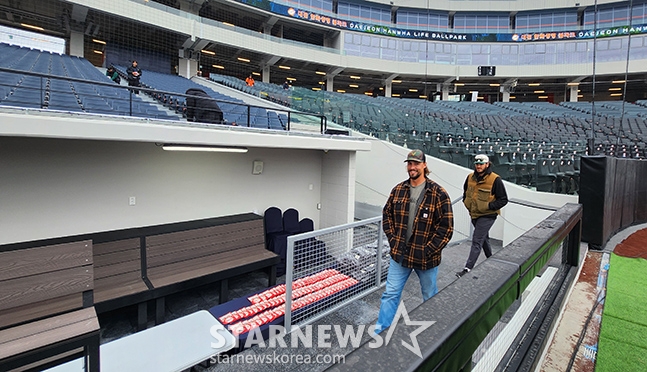 스포츠야구[포토] 폰세-와이스 'Wow 더그아웃 킹왕짱'발행 : 2025.03.05 ・ 16:46대전=김진경 대기자한화이글스 새 홈구장 대전 한화생명 볼파크가 3년 공사를 마치고 5일 공식 개장했다.폰세와 와이스가 더그아웃을 살피고 있다.미디어 라운딩에 이어 선수단 팬 사인회와 시민화합 축하콘서트가 이어져 대전 시민들을 들뜨게 했다.대전시립교향악단의 연주와 성악가 황수미, 뮤지컬 배우 정성화의 공연과 오마이걸, VOS, 김의영, 최성수, 설운도의 축하공연도 이어진다.<저작권자 © 스타뉴스, 무단전재 및 재배포 금지>한화생명_볼파크개장식문동주류현진신구장인피니트풀추천 기사김진경 대기자기자홈좋아요 스포츠-야구의 인기 급상승 뉴스스포츠-야구의 최신 뉴스