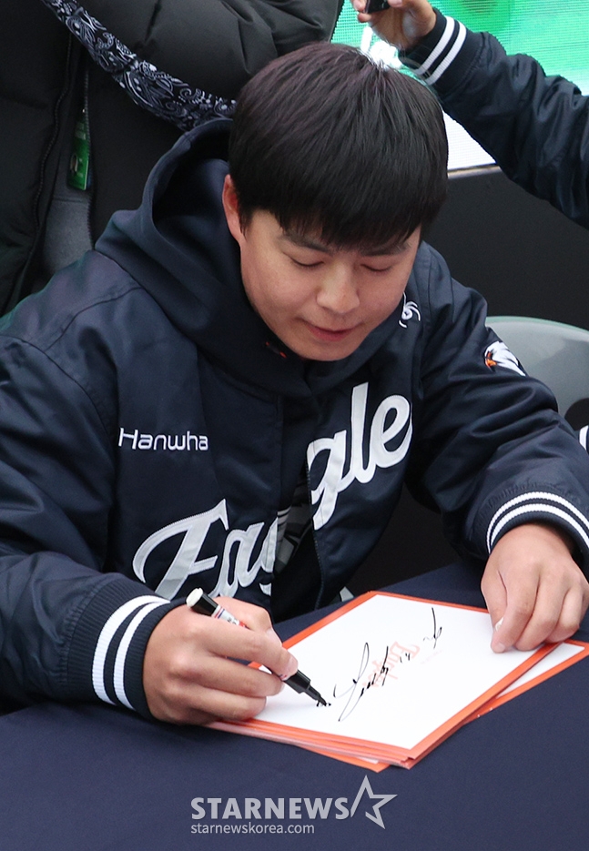 스포츠야구[포토] 노시환 '사인은 정성스럽게'발행 : 2025.03.05 ・ 18:02대전=김진경 대기자한화이글스 새 홈구장 대전 한화생명 볼파크가 3년 공사를 마치고 5일 공식 개장했다.노시환이 팬사인회에서 팬들과 소통하고 있다.미디어 라운딩에 이어 선수단 팬 사인회와 시민화합 축하콘서트가 이어져 대전 시민들을 들뜨게 했다.대전시립교향악단의 연주와 성악가 황수미, 뮤지컬 배우 정성화의 공연과 오마이걸, VOS, 김의영, 최성수, 설운도의 축하공연도 이어졌다.<저작권자 © 스타뉴스, 무단전재 및 재배포 금지>브리핑요약 없이도 가볍게 읽으실 수 있는 짧은 뉴스입니다.추천 기사김진경 대기자기자홈좋아요스포츠-야구의 인기 급상승 뉴스스포츠-야구의 최신 뉴스AD