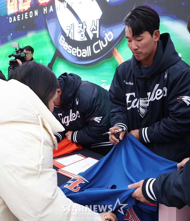 스포츠야구[포토] 황영묵 '최강야구 정신 잊지 않으리'발행 : 2025.03.05 ・ 18:04대전=김진경 대기자한화이글스 새 홈구장 대전 한화생명 볼파크가 3년 공사를 마치고 5일 공식 개장했다.황영묵이 팬사인회에서 팬들과 소통하고 있다.미디어 라운딩에 이어 선수단 팬 사인회와 시민화합 축하콘서트가 이어져 대전 시민들을 들뜨게 했다.대전시립교향악단의 연주와 성악가 황수미, 뮤지컬 배우 정성화의 공연과 오마이걸, VOS, 김의영, 최성수, 설운도의 축하공연도 이어졌다.<저작권자 © 스타뉴스, 무단전재 및 재배포 금지>한화생명_볼파크개장식문동주류현진신구장인피니트풀추천 기사김진경 대기자기자홈좋아요 스포츠-야구의 인기 급상승 뉴스스포츠-야구의 최신 뉴스