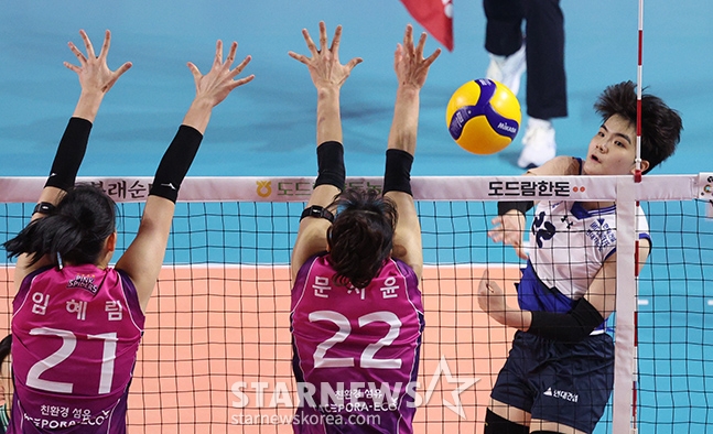 스포츠일반[포토] 서지혜 '정교한 타격'발행 : 2025.03.06 ・ 19:47인천=김진경 대기자광고삭제도드람 2024-2025 V리그 여자부 흥국생명-현대건설전이 6일 인천삼산월드체육관에서 열렸다.현대건설 서지혜가 흥국생명 임혜림 문지윤의 더블 블로킹 위로 강스파이크를 날리고 있다.<저작권자 © 스타뉴스, 무단전재 및 재배포 금지>프로배구여자배구V리그흥국생명현대건설븕로퀸추천 기사김진경 대기자기자홈좋아요 스포츠-일반의 인기 급상승 뉴스스포츠-일반의 최신 뉴스