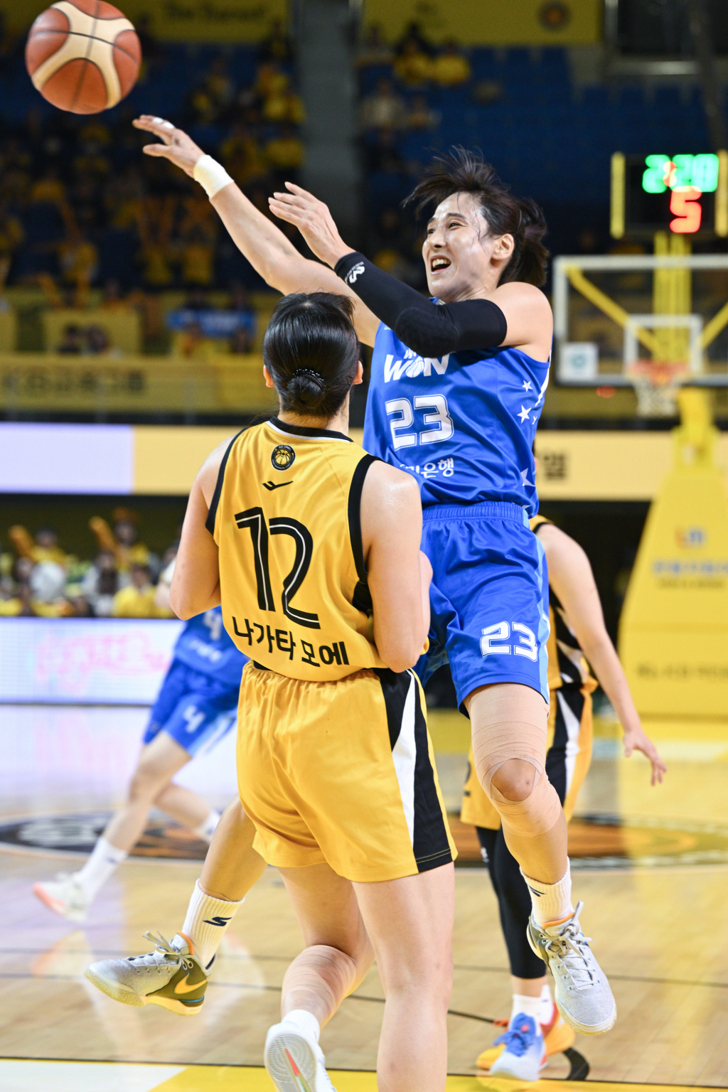 우리은행은 지난 6일 청주체육관에서 열린 '2024~25시즌 여자 프로농구(WKBL) 4강 플레이오프(5전 3승제)' 3차전 원정에서 청주 KB를 51-49로 꺾었다.
