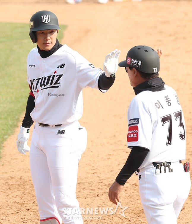 스포츠야구[포토] 장진혁 '코치님이랑 친해졌어요'발행 : 2025.03.09 ・ 15:33수원=김진경 대기자2025 신한 SOL Bank KBO리그 시범경기 LG 트윈스 대 KT 위즈 경기가 9일 수원KT위즈파크에서 열렸다.KT 장진혁이 7회말 2사 2,3루에서 1타점 적사타를 날리고 출루한 후 이종범 코치의 환영을 받고 있다.<저작권자 © 스타뉴스, 무단전재 및 재배포 금지>프로야구시범경기KBOLGKT박동원추천 기사김진경 대기자기자홈좋아요 스포츠-야구의 인기 급상승 뉴스스포츠-야구의 최신 뉴스