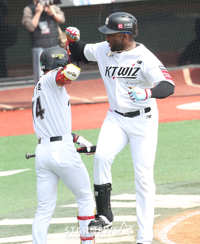 스포츠야구[포토] 로하스 '천성호와 점프 세리머니'발행 : 2025.03.10 ・ 13:38조회수 :수정 : 2025.03.10 ・ 16:28수원=김진경 대기자2025 신한 SOL Bank KBO리그 시범경기 kt 위즈 대 키움 히어로즈 경기가 10일 수원KT위즈파크에서 열렸다.kt 로하스가 1회말 무사 2루애서 선제 우월 2점 홈런을 날리고 홈인한 후 천성호와 세리머니를 선보이고 있다.<저작권자 © 스타뉴스, 무단전재 및 재배포 금지>브리핑추천 기사김진경 대기자기자홈좋아요스포츠-야구의 인기 급상승 뉴스스포츠-야구의 최신 뉴스