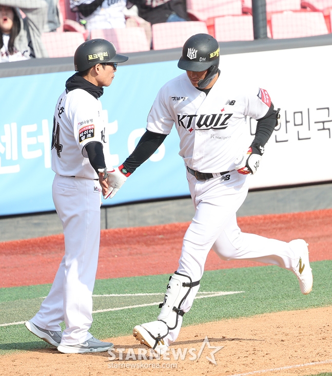 스포츠야구[포토] 황재균 '시크한 터치'발행 : 2025.03.11 ・ 17:41수원=김진경 대기자2025 신한 SOL Bank KBO리그 시범경기 kt 위즈 대 키움 히어로즈 경기가 11일 수원KT위즈파크에서 열렸다.KT 황재균이 8회말 1사에서 좌월 1점 홈런을 날리고 최만호 코치의 환영을 받으며 홈인하고 있다.<저작권자 © 스타뉴스, 무단전재 및 재배포 금지>브리핑요약 없이도 가볍게 읽으실 수 있는 짧은 뉴스입니다.추천 기사김진경 대기자기자홈좋아요스포츠-야구의 인기 급상승 뉴스스포츠-야구의 최신 뉴스