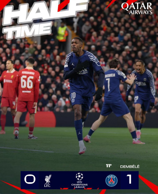 PSG는 전반 12분 뎀벨레의 선제골로 앞서갔다. 오른쪽 측면에서 바르콜라가 페널티박스 안으로 볼을 투입했고, 리버풀 수비들과 골키퍼가 엉킨 사이 뎀벨레가 빈 골대에 차 넣었다.