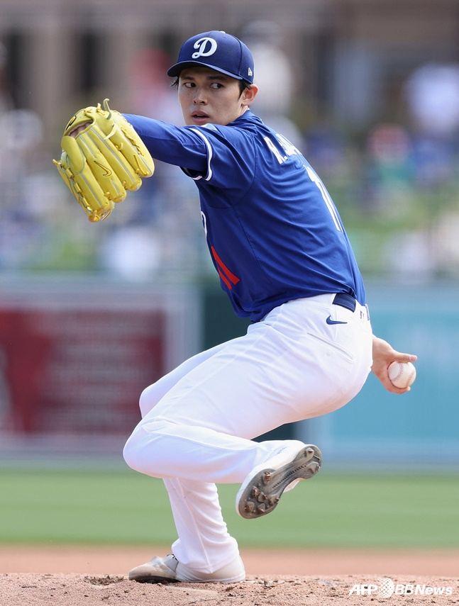 사사키는 12일(한국시간) 미국 애리조나주 피닉스 캐멀백 랜치에서 열린 클리블랜드 가디언스와 2025 메이저리그(MLB) 시범경기에 선발 등판해 4이닝 동안 41구만 던져 1피안타 2볼넷 2탈삼진 무실점 호투를 이어갔다.