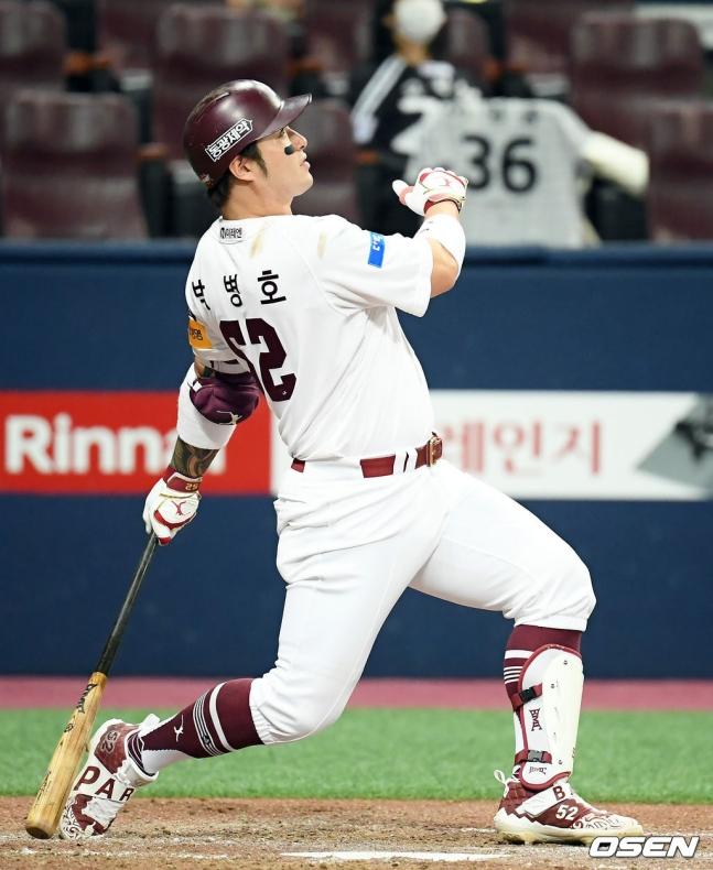 키움 히어로즈 유니폼을 입고 눕는 타격폼으로 똑같이 타구를 응시한다. 신인 여동욱(19)이 마치 박병호(39·삼성 라이온즈)가 연상되는 듯한 화끈한 배트 플립으로 화제가 됐다.