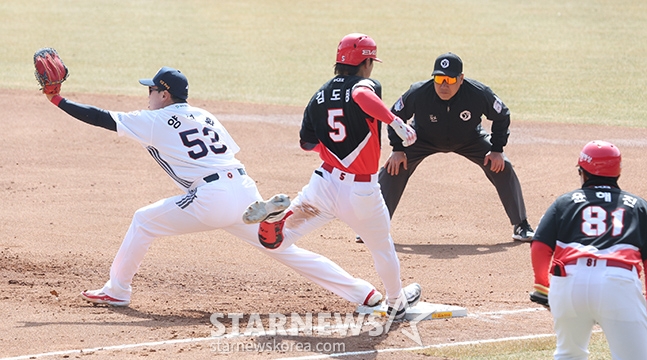 스포츠야구[포토] 김도영 '빠른 발로 내야안타'발행 : 2025.03.13 ・ 14:07잠실=김진경 대기자2025 신한 SOL Bank KBO리그 시범경기 두산 베어스 대 KIA 타이거즈 경기가 13일 잠실야구장에서 열렸다.KIA 김도영이 3회초 1사 1루에서 유격수 땅볼을 날리고 질주해 내야 안타를 만들고 있다. 두산 1루눈 양석환.<저작권자 © 스타뉴스, 무단전재 및 재배포 금지>브리핑요약 없이도 가볍게 읽으실 수 있는 짧은 뉴스입니다.추천 기사김진경 대기자기자홈좋아요스포츠-야구의 인기 급상승 뉴스스포츠-야구의 최신 뉴스AD