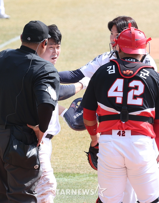 스포츠야구[포토] 양의지-김태군 '일촉즉발?'발행 : 2025.03.14 ・ 14:20조회수 :잠실=김진경 대기자2025 신한 SOL Bank KBO리그 시범경기 두산 베어스 대 KIA 타이거즈 경기가 14일 잠실야구장에서 열렸다.두산 양의지가 4회말 무사에서 KIA 네일이 던진 공을 피하다 나뒹군 후 포수 김태군을 타박하고 있다.<저작권자 © 스타뉴스, 무단전재 및 재배포 금지>브리핑추천 기사김진경 대기자기자홈좋아요스포츠-야구의 인기 급상승 뉴스스포츠-야구의 최신 뉴스AD