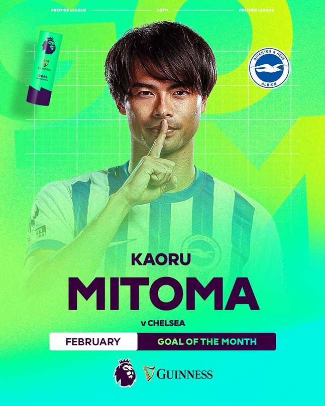 미토마 카오루(28·브라이튼)가 EPL(잉글리시 프리미어리그) 2월 이달의 골 수상자가 됐다.