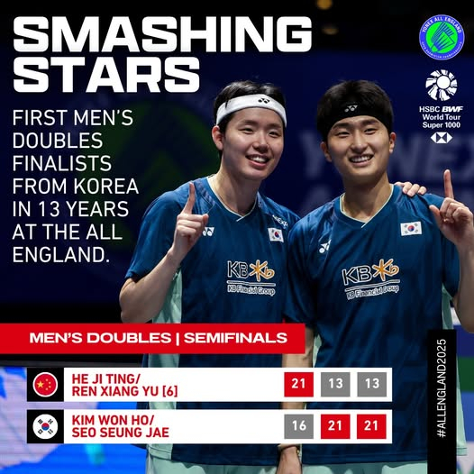 한편 남자 복식의 서승재-김원호(이상 삼성생명)도 허지팅-런샹위(중국)를 2-1(16-21 21-13 21-13)로 꺾고 결승에 올랐다.