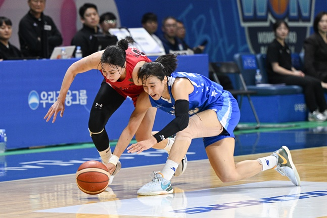 BNK는 16일 오후 2시 25분 충남 아산이순신체육관에서 열린 아산 우리은행 우리WON과 하나은행 2024~2025 여자프로농구 챔피언결정전(5전 3선승제) 1차전에서 53-47로 이겼다.