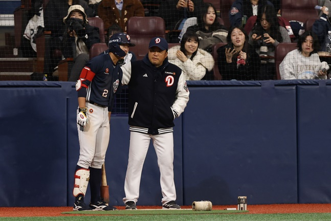 이날 두산은 김민석(좌익수)-김재환(지명타자)-양의지(포수)-제이크 케이브(우익수)-강승호(3루수)-양석환(1루수)-오명진(2루수)-박준영(유격수)-정수빈(중견수) 순으로 타선을 꾸렸다.