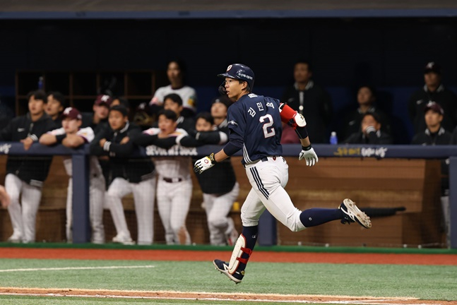 이승엽 감독은 "우선은 1번이 안타를 치고 진루타를 쳐야지 2루로 가는데 2루타와 장타도 칠 수 있는 그런 선수이기 때문에 그런 부분에서는 우리가 김민석 선수를 1번으로 쓰게 됐다"고 전했다.